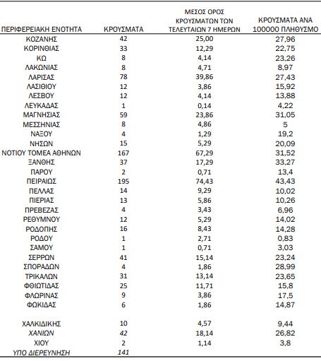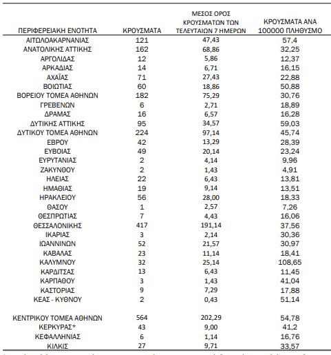 Αναλυτικότερα τα κρούσματα στις περιφερειακές ενότητες που ανήκουν στην Αττική: