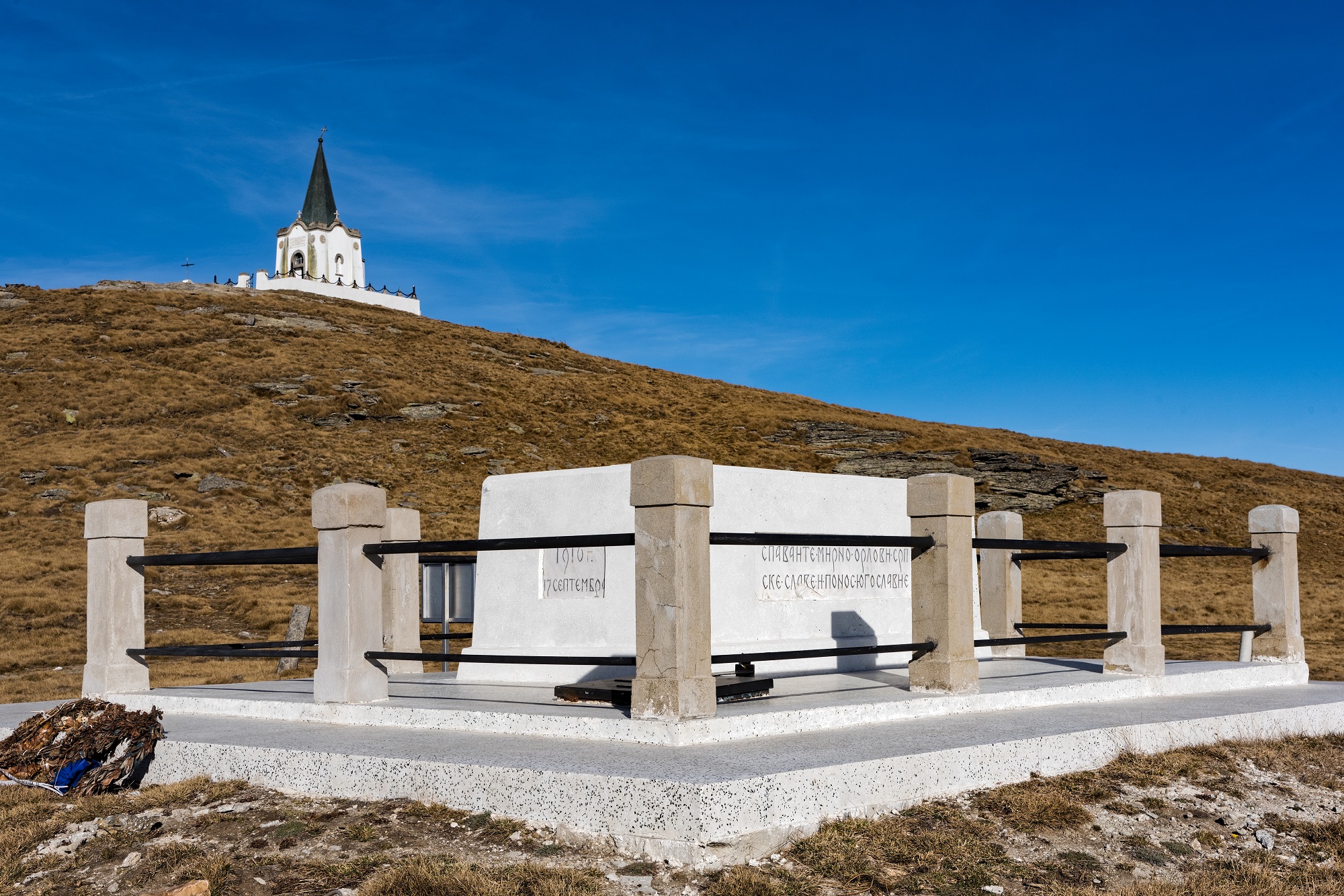 Το μνημείο των Σέρβων πεσόντων, με τον Προφήτη Ηλία να δεσπόζει στην κορυφή του Βόρα/Photo: Shutterstock