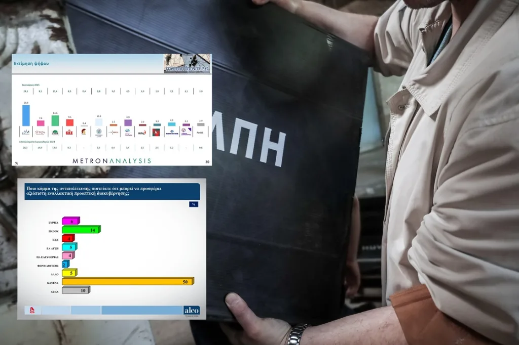 ALCO: Μικρή άνοδος για ΝΔ και ΣΥΡΙΖΑ, πτώση για ΠΑΣΟΚ – Μάχη στα κόμματα πέριξ του 3%
