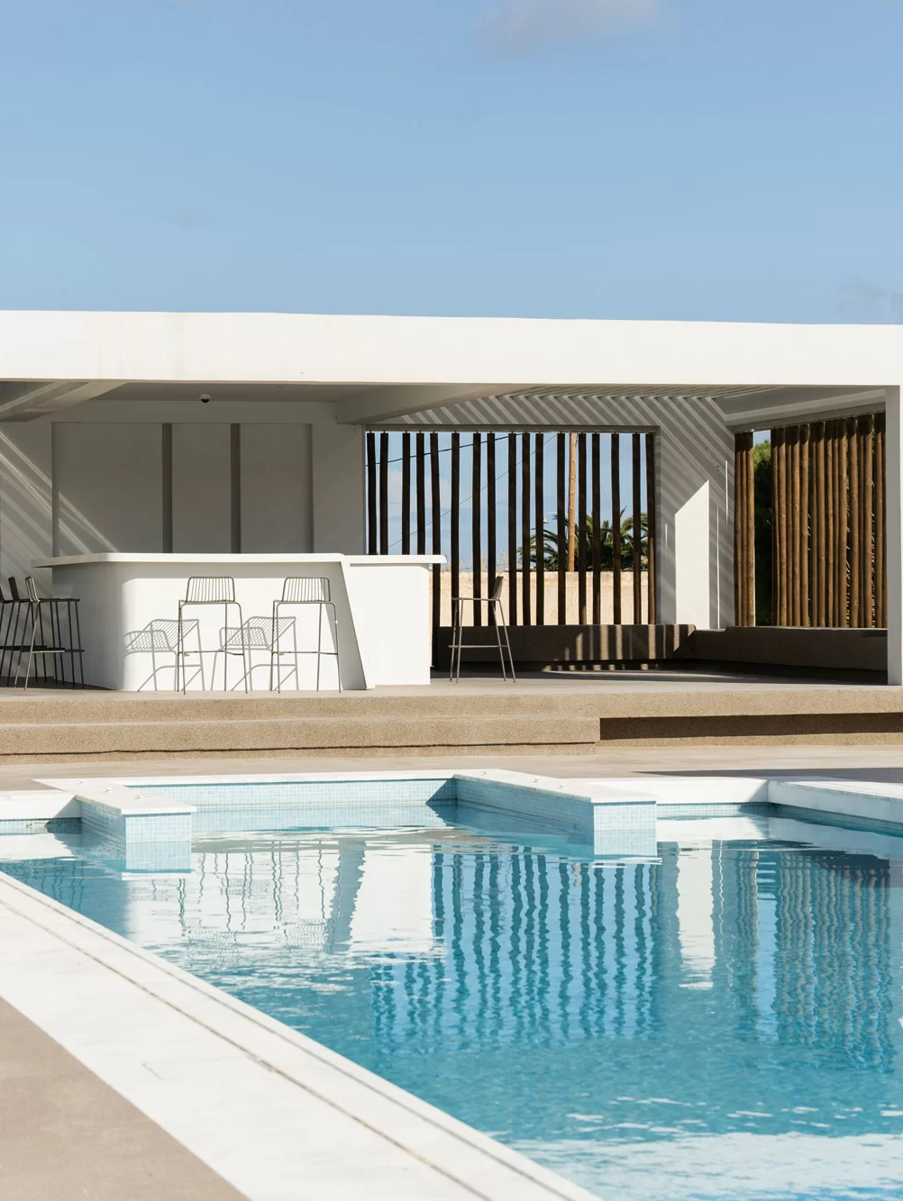 Tzanis Resort: κατάλευκο ξενοδοχείο, με μίνιμαλ αισθητική, που οργανώνεται γύρω από μια μεγάλη πισίνα με άνετα δωμάτια.