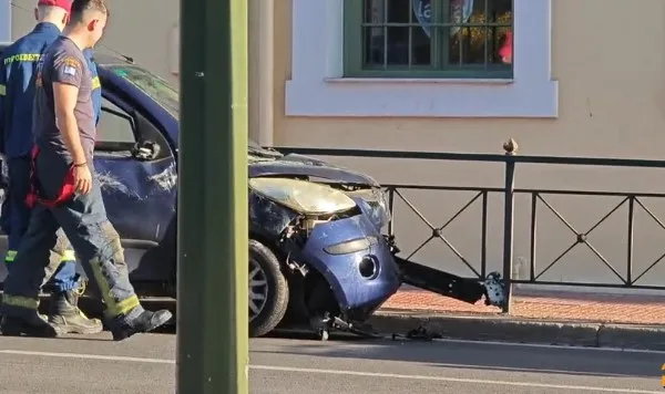 Πειραιώς: Αυτοκίνητο καρφώθηκε σε κολόνα- Επέβαιναν μητέρα και παιδί