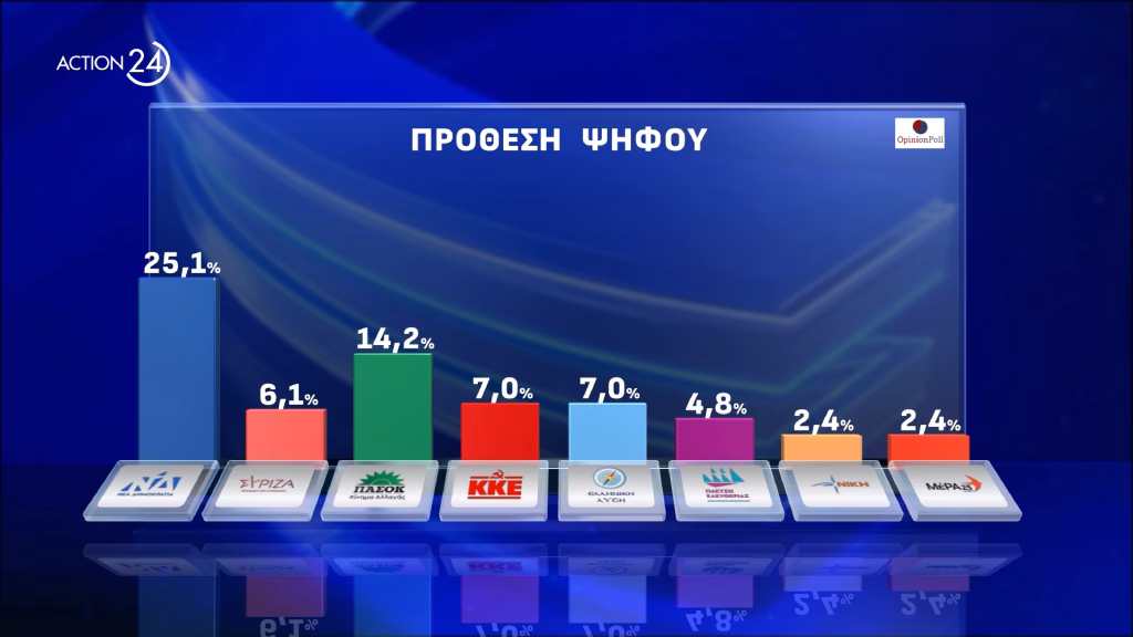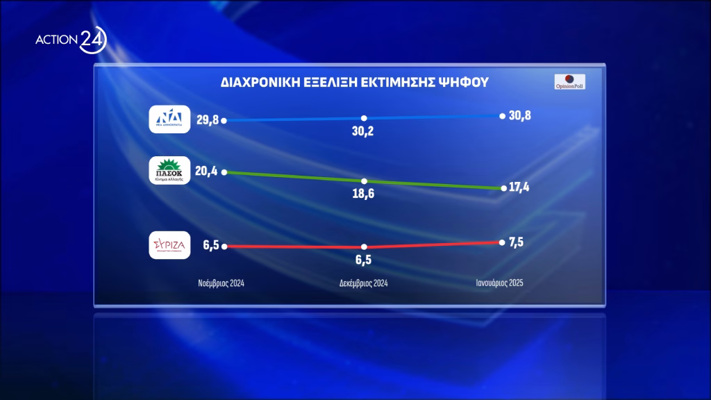 Opinion Poll: Εκπλήξεις στην πρώτη δημοσκόπηση του 2025- Άνοδος ΝΔ, πτώση ΠΑΣΟΚ, πέμπτος ο ΣΥΡΙΖΑ
