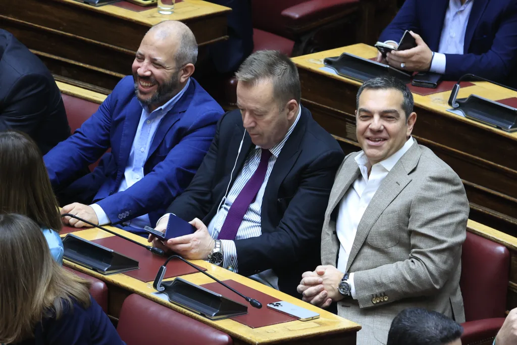 – Ο πρώην πρόεδρος του ΣΥΡΙΖΑ, Αλέξης Τσίπρας επέλεξε τα μεσαία έδρανα έχοντας δίπλα του τον βουλευτή του ΣΥΡΙΖΑ, Βασίλη Κόκκαλη, δείχνοντας να ακούει με ενδιαφέρον τα όσα του έλεγε για αρκετή ώρα ο τελευταίος.