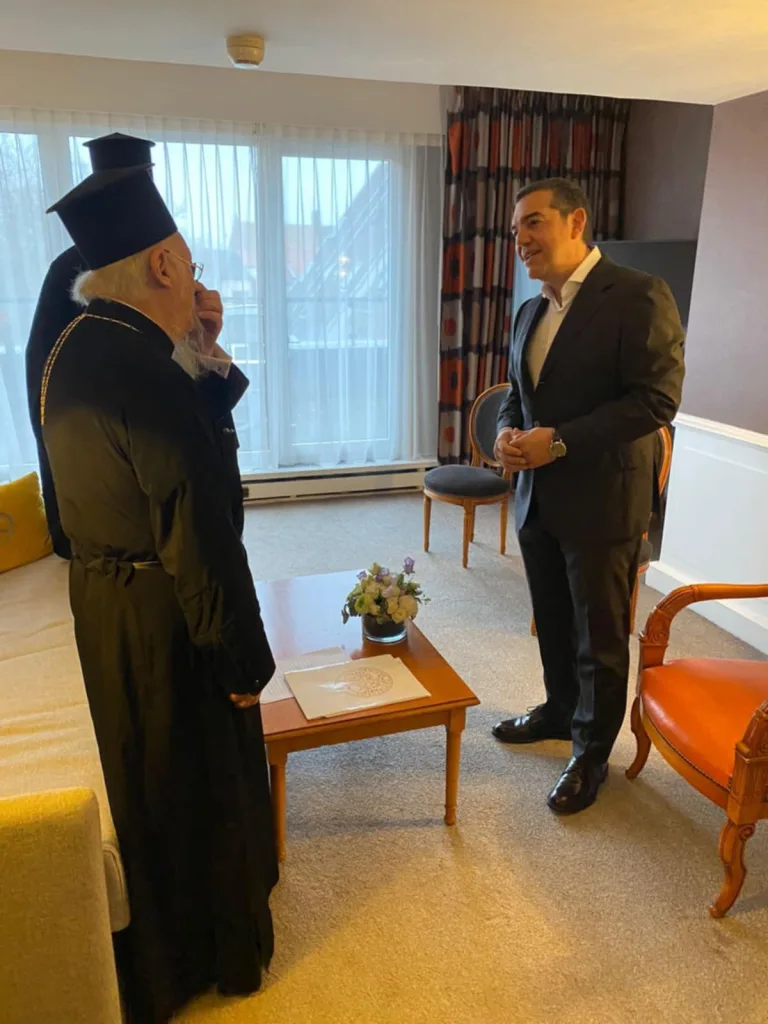 - Σε αυτό το πλαίσιο, ο Αλέξης Τσίπρας τόνισε την ακόμα μεγαλύτερη αξία που έχουν οι πρωτοβουλίες του Οικουμενικού Πατριάρχη για την προώθηση του διαθρησκευτικού διαλόγου και την προστασία του περιβάλλοντος.