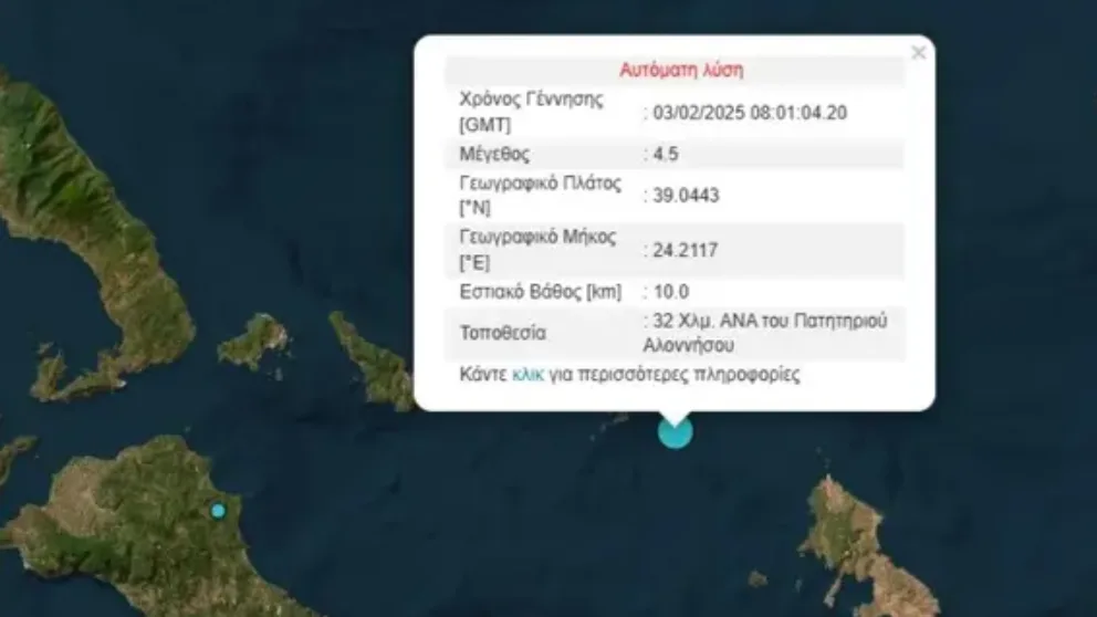 Σεισμική δόνηση έγινε αισθητή στην Αττική με επίκεντρο την περιοχή της Αλοννήσου.