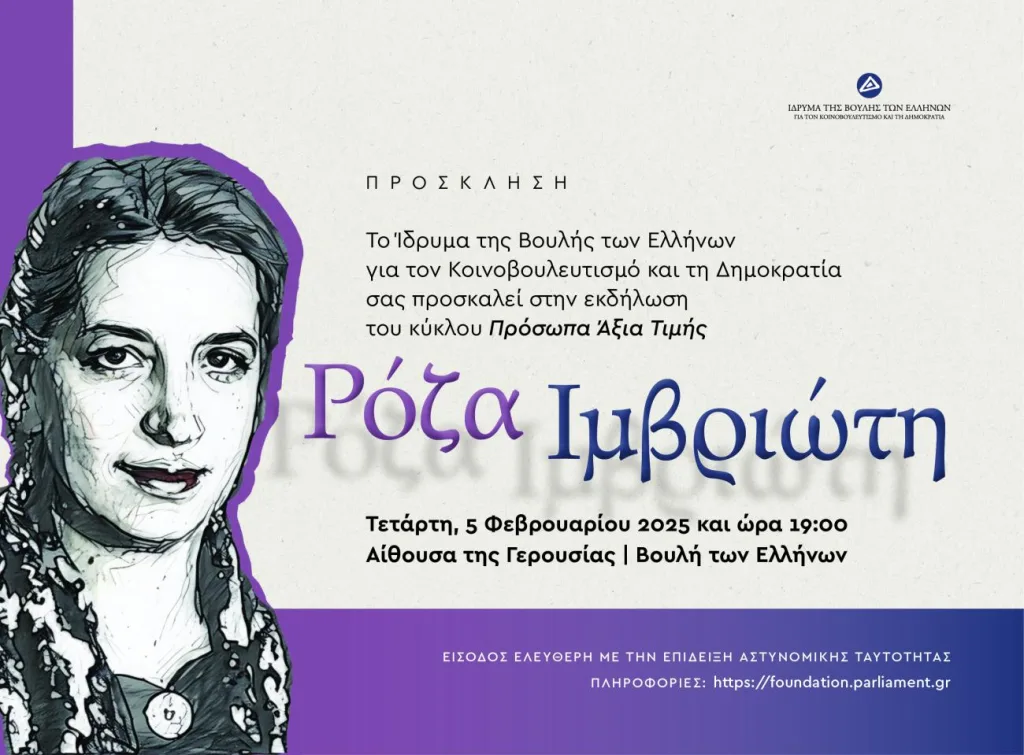 Σήμερα (05/02) στη Γερουσία της Βουλής πραγματοποιήθηκε εκδήλωση για τη Ρόζα Ιμβριώτη (Ελληνίδα παιδαγωγός πρωτοπόρος στην ειδική εκπαίδευση) με την είσοδο για το κοινό να είναι ελεύθερη και να μπαίνουν με τις ταυτότητα τους.