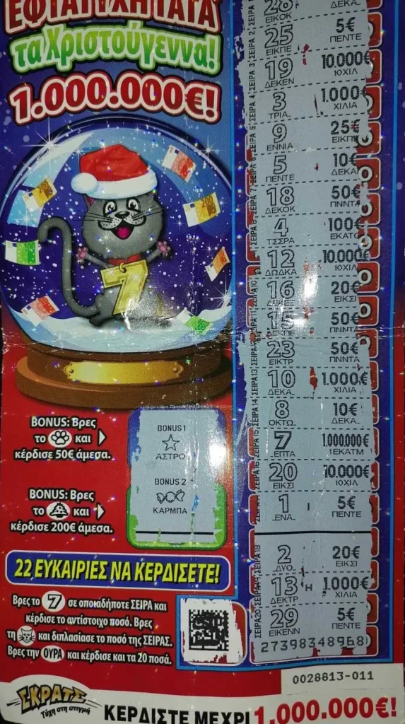 Εκατομμυριούχος μέσα σε λίγα λεπτά – Τυχερός παίκτης του ΣΚΡΑΤΣ βρήκε την “Εφτάτυχη Γάτα τα Χριστούγεννα” στους Γαργαλιάνους Μεσσηνίας