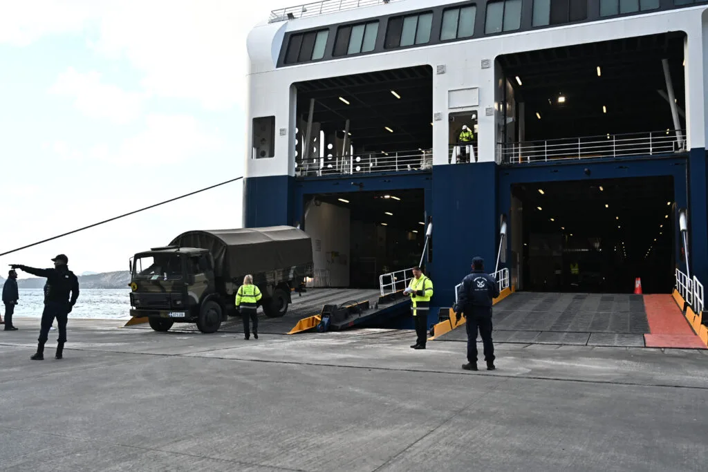 Παράλληλα 2 φορτηγά του ΔΕΔΔΗΕ με γεννήτριες καθώς και οχήματα με κεραίες κινητής τηλεφωνίας αποβιβάστηκαν επίσης από το καράβι που έδεσε στο λιμάνι του νησιού.