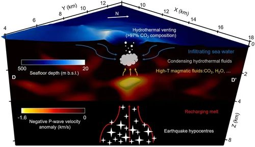 Τα δεδομένα αυτά δεν είχαν εντοπιστεί σε προηγούμενες έρευνες και η καταγραφή τους κατέστη δυνατή χάρη σε μια προηγμένη τομογραφική μέθοδο επόμενης γενιάς. Η τεχνική αυτή βασίζεται σε ιδιαίτερα πυκνές καταγραφές του θαλάσσιου πυθμένα, χρησιμοποιώντας ελεγχόμενες θαλάσσιες ηχητικές πηγές, επιτρέποντας έτσι μια λεπτομερή χαρτογράφηση του υποθαλάσσιου ηφαιστειακού συστήματος.