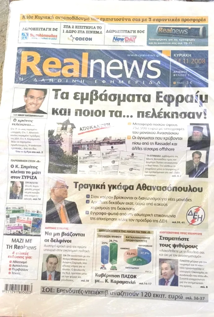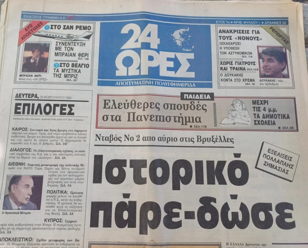 Χαρακτηριστικά παραδείγματα νο 1 εφημερίδων οι «24 ΩΡΕΣ» του Γιώργου Κοσκωτά, το