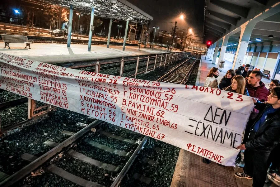 Στο συμβολικό κλείσιμο των σιδηροδρομικών γραμμών οι σιδηροδρομικές γραμμές μπροστά από τον Σταθμό του ΟΣΕ στη Λάρισα, προχώρησαν το απόγευμα της Πέμπτης (27/02) οι φοιτητές της Ιατρικής Λάρισας, μία ημέρα πριν τη συμπλήρωση δύο χρόνων από το δυστύχημα των Τεμπών.