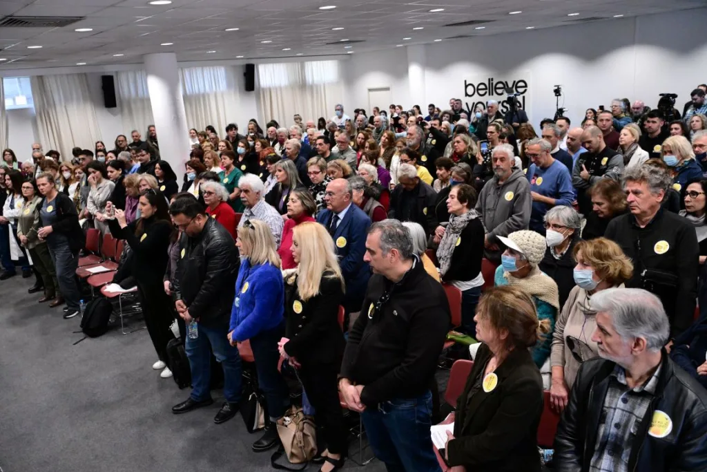 Παρουσία συγγενών θυμάτων των Τεμπών, μεταξύ των οποίων η Μαρία Καρυστιανού, ο Παύλος Ασλανίδης και η Μαρία Ντόλκα-Παπαγγελή, πραγματοποιήθηκε εκδήλωση για «το έγκλημα των Τεμπών», όπως αναφέρει το σωματείο εργαζομένων του νοσοκομείου.