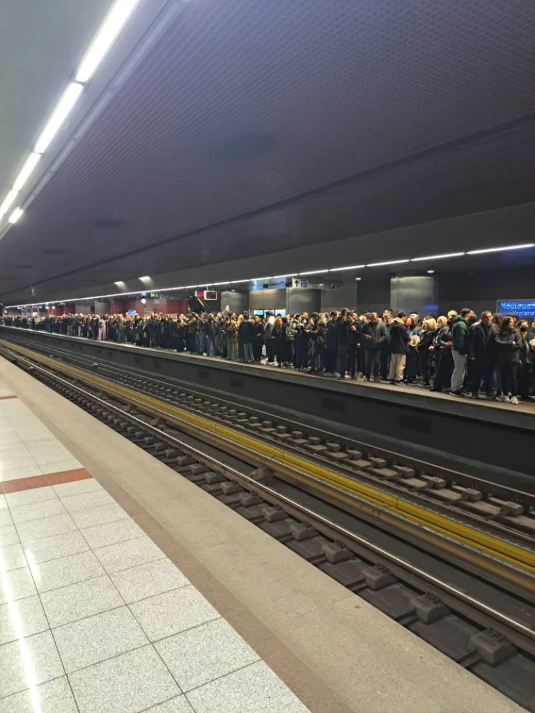Τα βαγόνια είναι γεμάτα από κόσμο ενώ πάρα πολλοί είναι ήδη στο Σύνταγμα. Πολίτες που θέλουν να διαδηλώσουν επιλέγουν να κατέβουν στον σταθμό της Ακρόπολης ή της Ομόνοιας ώστε να κατευθυνθούν στο Σύνταγμα με τα πόδια, μιας και η κατάσταση στα βαγόνια είναι ασφυκτική.