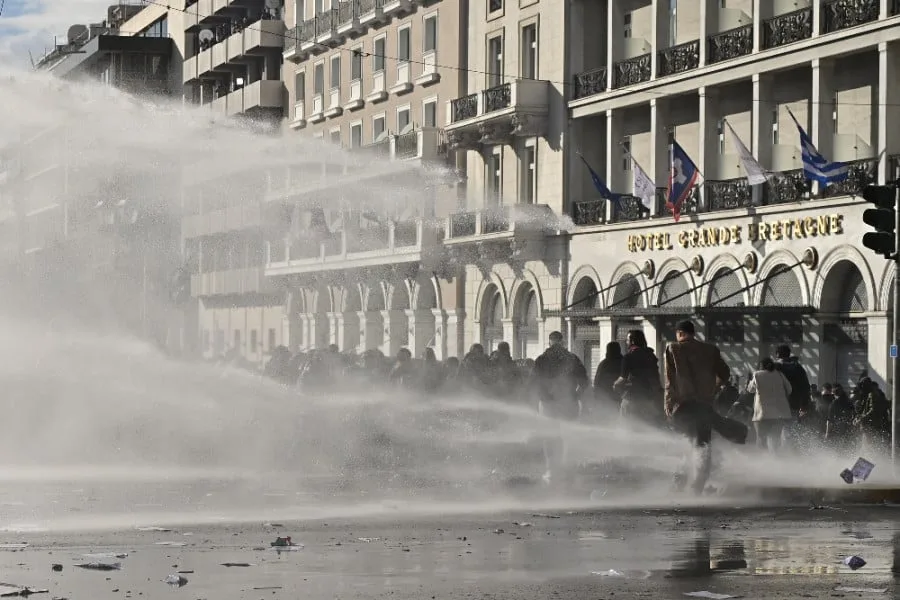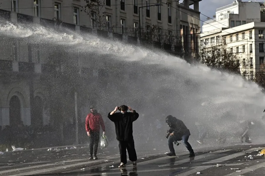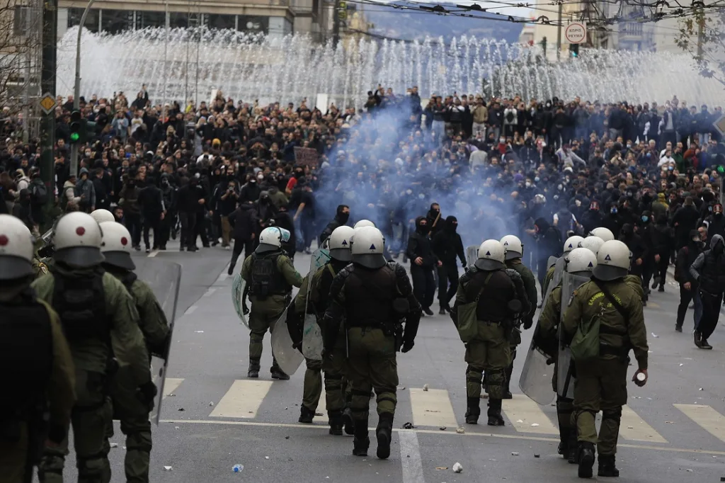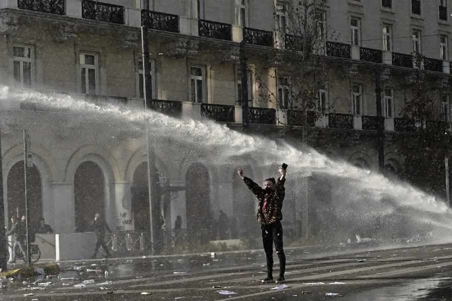 Οι συγκεντρωμένοι παρέμειναν στο Σύνταγμα με την Αύρα της αστυνομίας να επιχειρεί να διασπάσει τον κόσμο με νερό.