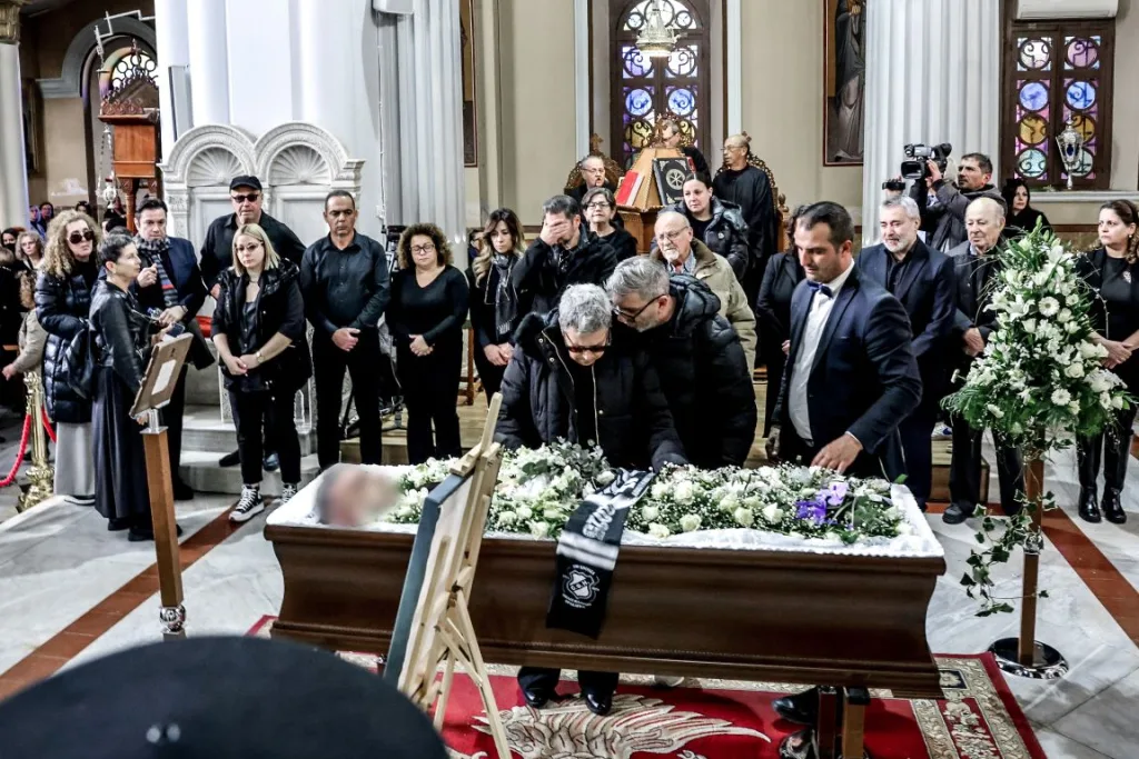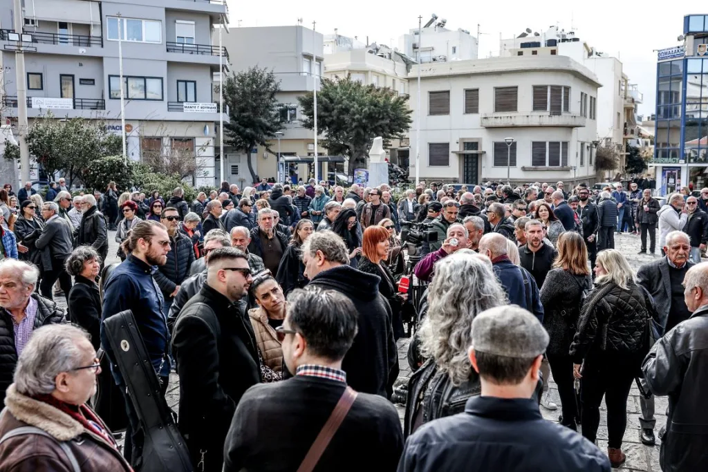 Πλήθος κόσμου συγκεντρώθηκε στον Ιερό Ναό του Αγίου Μηνά, αποχαιρετώντας τον δημοφιλή καλλιτέχνη με τραγούδια του και χειροκροτήματα.