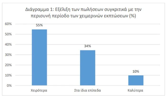 - Δύο στις 3 επιχειρήσεις υιοθέτησαν τα ίδια ποσοστά εκπτώσεων συγκριτικά με πέρυσι.