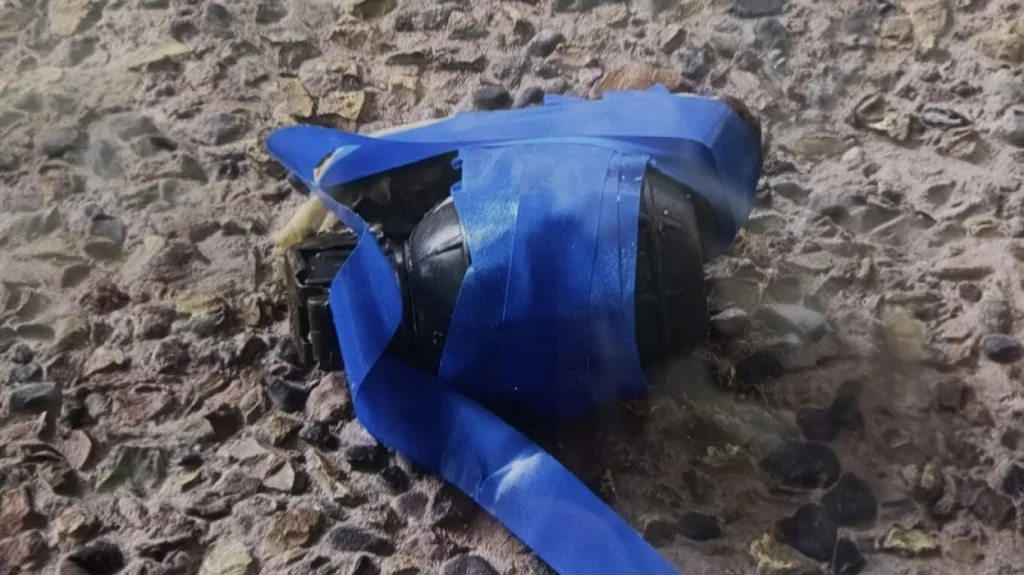 Η χειροβομβίδα βρέθηκε χωρίς περόνη, τυλιγμένη με μονωτική ταινία.