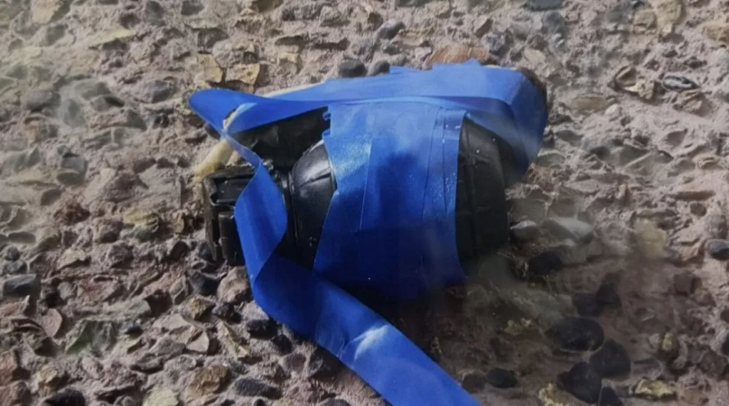 Η χειροβομβίδα βρέθηκε χωρίς περόνη, τυλιγμένη με μονωτική ταινία.