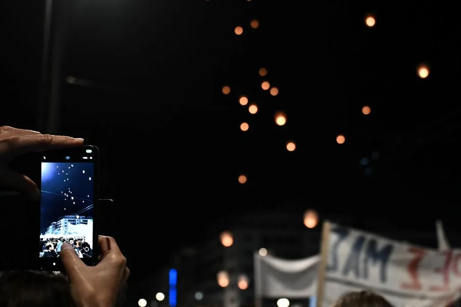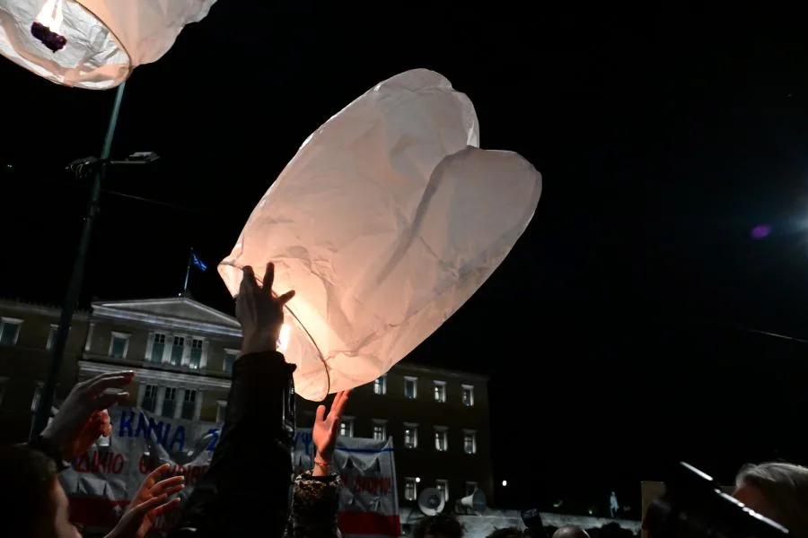 Τέμπη/Συγκίνηση στο Σύνταγμα: 57 φαναράκια στον ουρανό για τα θύματα (εικόνες)