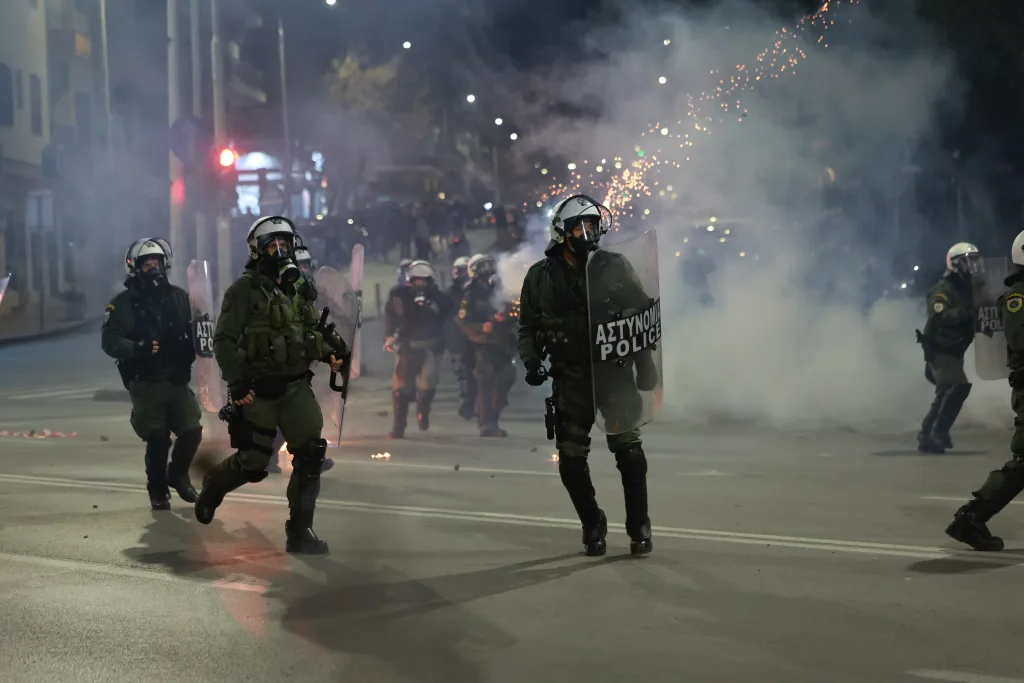Στη συνέχεια, ομάδα ατόμων προχώρησε σε ταυτόχρονες συνεχείς και σφοδρές επιθέσεις με ρίψη αντικειμένων, φωτοβολίδων και βομβών μολότοφ σε βάρος των αστυνομικών δυνάμεων που βρίσκονταν επί της Λεωφόρου Βασ. Αμαλίας, επί της Πλατείας Συντάγματος, στην αρχή της οδού Ερμού και στη συμβολή των οδών Όθωνος και Φιλελλήνων.