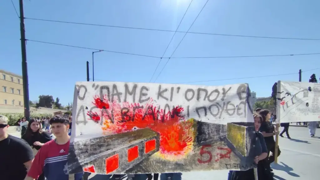 Η πορεία κινήθηκε προς τη Βουλή, με τους διαδηλωτές να φωνάζουν συνθήματα όπως: «Όλων των νεκρών είμαστε φωνή, το έγκλημα στα Τέμπη δεν θα συγκαλυφθεί». Πολλοί, επίσης, φώναζαν «δολοφόνοι, δολοφόνοι» και «παραιτήσου».