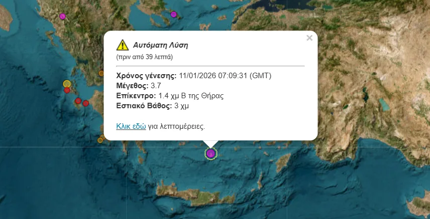 Σεισμός 3,7 Ρίχτερ σημειώθηκε το πρωί της Κυριακής ανοιχτά της Σαντορίνης.
