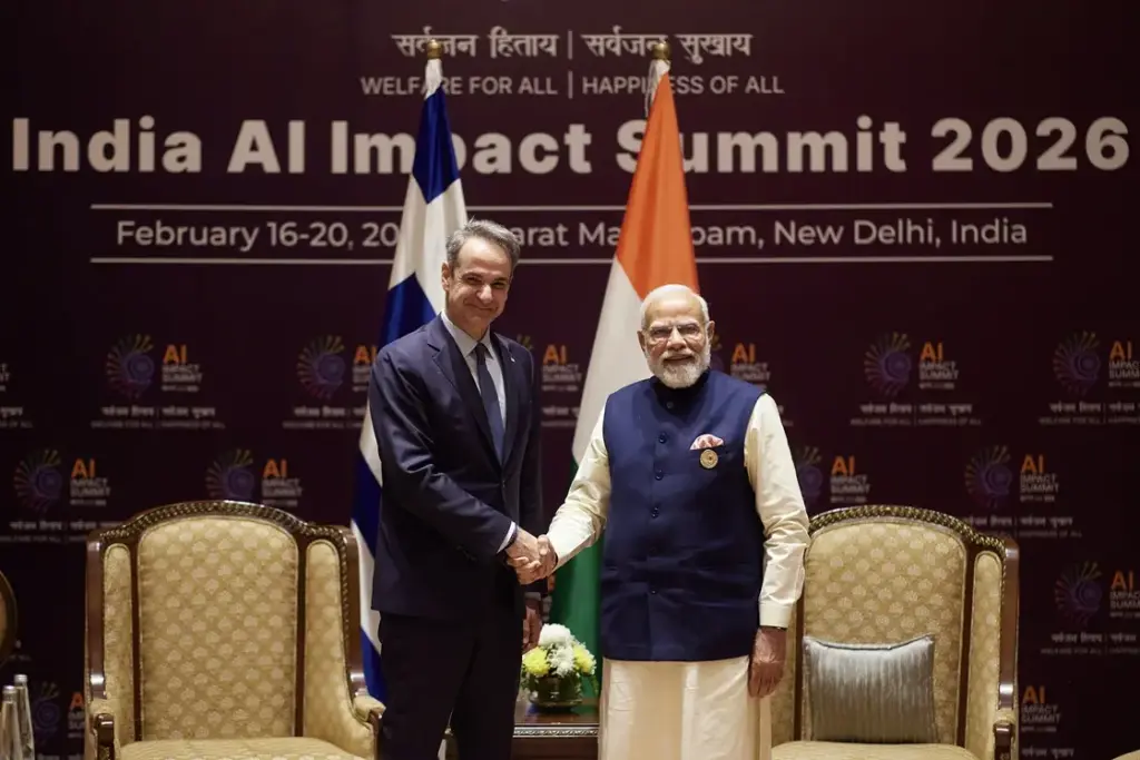 Στην Ινδία έφτασε το μεσημέρι της Τετάρτης (18/2) για το AI Impact Summit 2026 ο πρωθυπουργός, Κυριάκος Μητσοτάκης, τον οποίο υποδέχθηκε με μία θερμή χειραψία στο Bharat Mandapam ο πρωθυπουργός της Ινδίας, Ναρέντρα Μόντι.