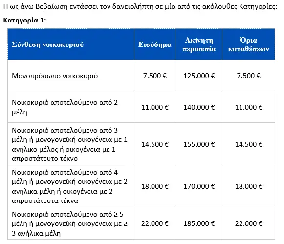 Η βεβαίωση κατάταξης σε μία εκ των τριών Κατηγοριών καθορίζει τους ευνοϊκούς όρους μετατροπής δανείων ελβετικού φράγκου σε ευρώ ως εξής: